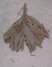 There are two major varieties to the Artemisia genus: A. California or Common Sagebrush, and A. vulgaris or Mugwort. There are many other varieties of both Salvia and Artemisia, and all are effective in smudging. Sage is burned in smudging ceremonies to drive out evil spirits, negative thoughts and feelings, and to keep Gan'n (negative entities) away from areas where ceremonials take place. In the Plains Sweat lodge, the floor of the structure is strewn with sage leaves for the participants to rub on their bodies during the sweat.